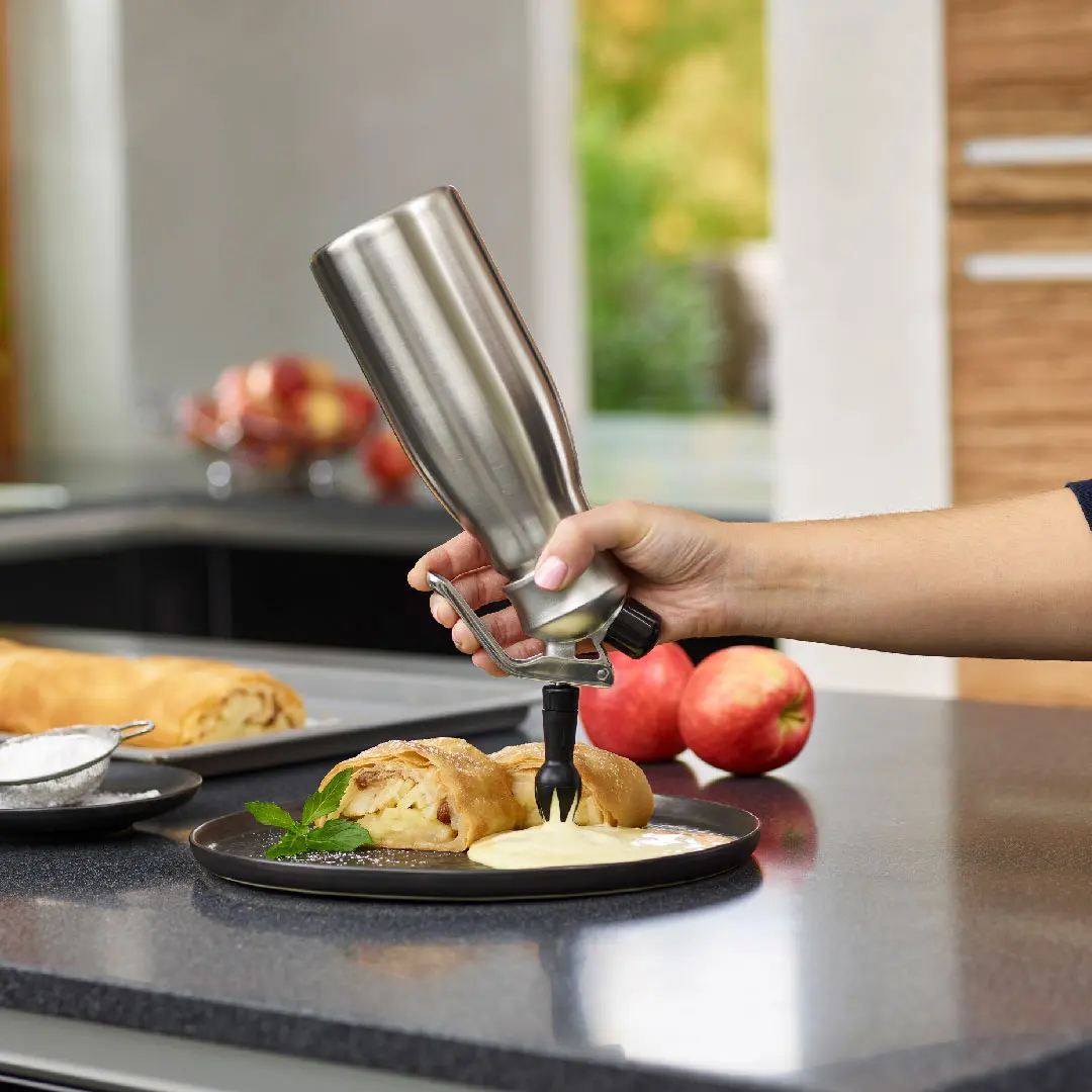 Eleva tus creaciones frías, calientes, dulces y picantes al más alto nivel de calidad y seguridad con chantillera profesional líder en el mercado.